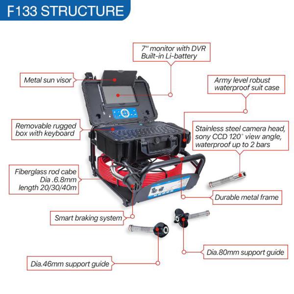 All-in-One Video pipe inspection camera with 20/30/40m fiberglass cable and 7" monitor with DVR feature